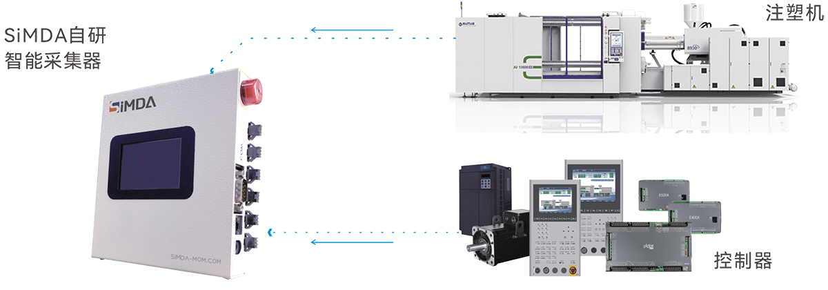 我司自主研發的SiMDA系列智能采集器,支持采集注塑機上的數據信息,除了支持采集標準的產出與節拍等,同時支持采集注塑機的參數信息。