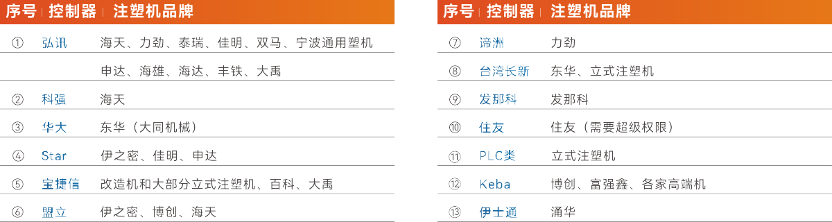 兼容品牌展示(兼容市面上90%以上的注塑機品牌)