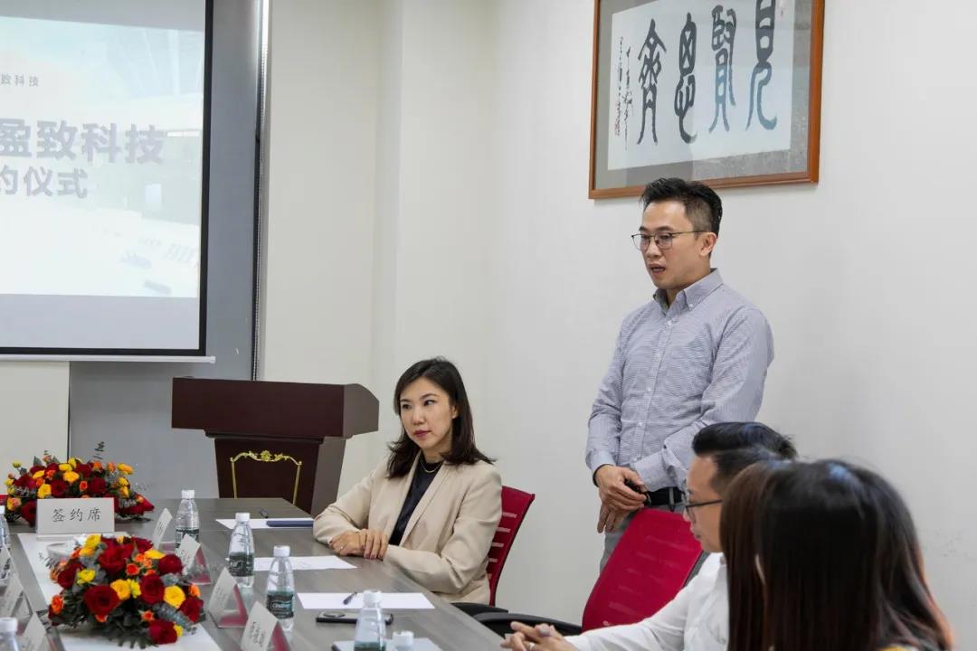 簽約儀式開始前,呂施緯女士向在場人士簡單介紹了盈致科技的整體架構和產品服務,回顧盈致科技十年來的發展歷史。