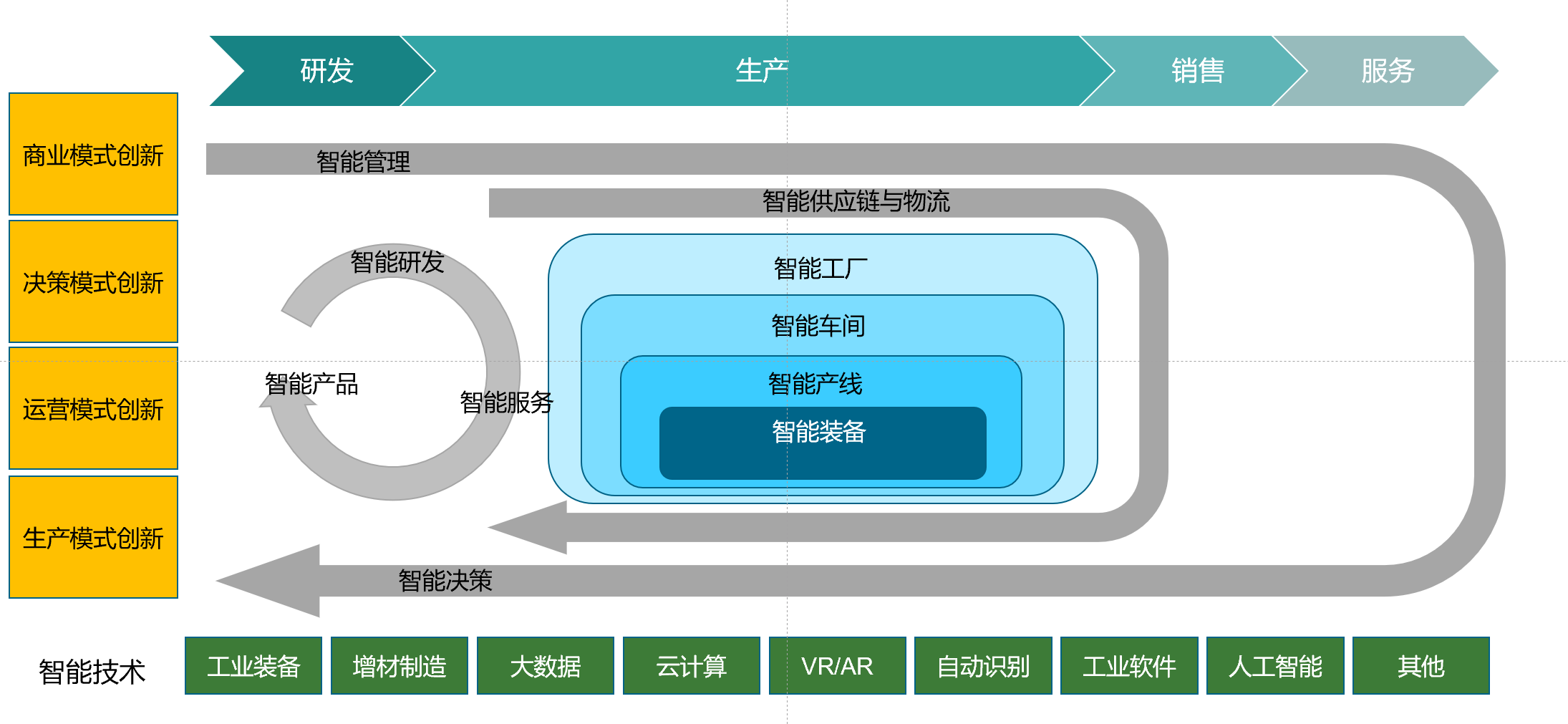 根據e-works(行業權威媒體)對智能制造的理解(如下圖),那么智能制造的實施內容涵蓋產品,裝備,產線,車間,工廠,研發,供應鏈,管理,服務和決策等方面。